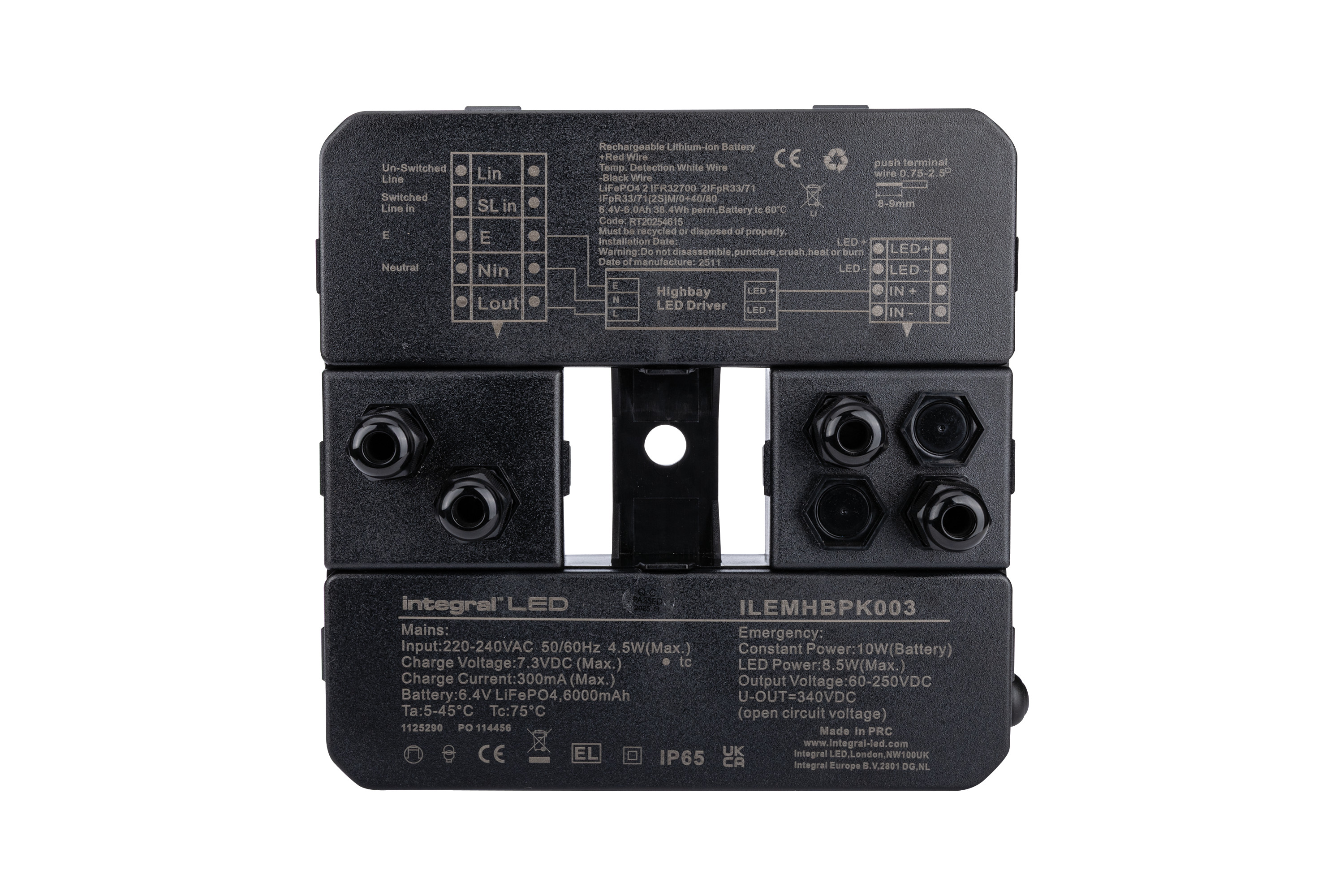 EMERGENCY CONVERSION PACK SUITABLE FOR 200W REMOTE LED DRIVER & DETACHABLE LED BOARD HIGHBAY 10W IP65 1200LM MANUAL TEST LIFEPO4 REPLACABLE BATTERY 5 YEAR WARRANTY INTEGRAL