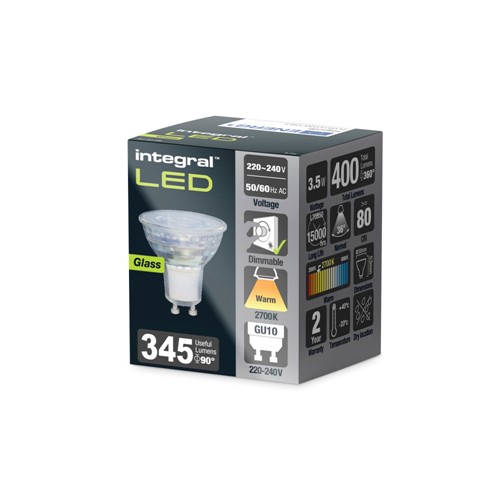 GLASS GU10 BULB 400LM 3.5W 2700K DIMMABLE 36 BEAM INTEGRAL