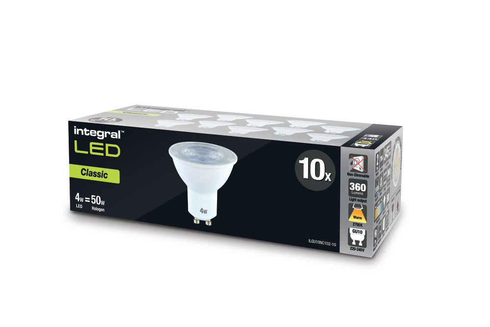 GU10 BULB 10 PACK 400LM 3.4W 2700K NON-DIMM 36 BEAM INTEGRAL