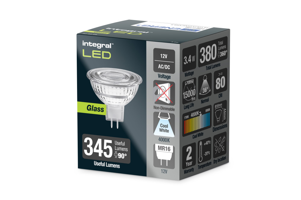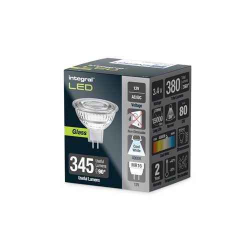 GLASS MR16 BULB GU5.3 380LM 3.4W 4000K NON-DIMM 36 BEAM INTEGRAL