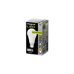 GLS BULB WITH DUSK TO DAWN DUAL SENSOR B22 806LM 8.5W 2700K NON-DIMM 240 BEAM FROSTED
