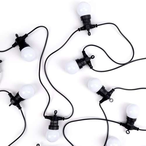 OUTDOOR 24V FESTOON LIGHT 20 BULBS SET IP44 130LM 5.5W 3000K FROSTED WITH IP20 UK PLUG INTEGRAL