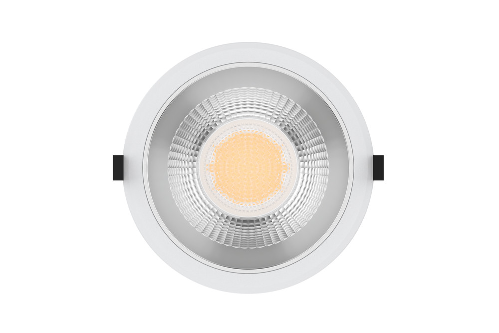A premium, recessed downlight designed to minimise glare and create soft, uniform lighting. Colour adjustable, mains dimmable, and DALI compatible for ultimate versatility and easy control. The sleek aluminium body produces a stylish and discreet look, while the high efficacy (133LM/W) ensures you won’t need to sacrifice brightness for energy savings. Ideal for commercial indoor settings. 5 years warranty for maximum peace of mind.