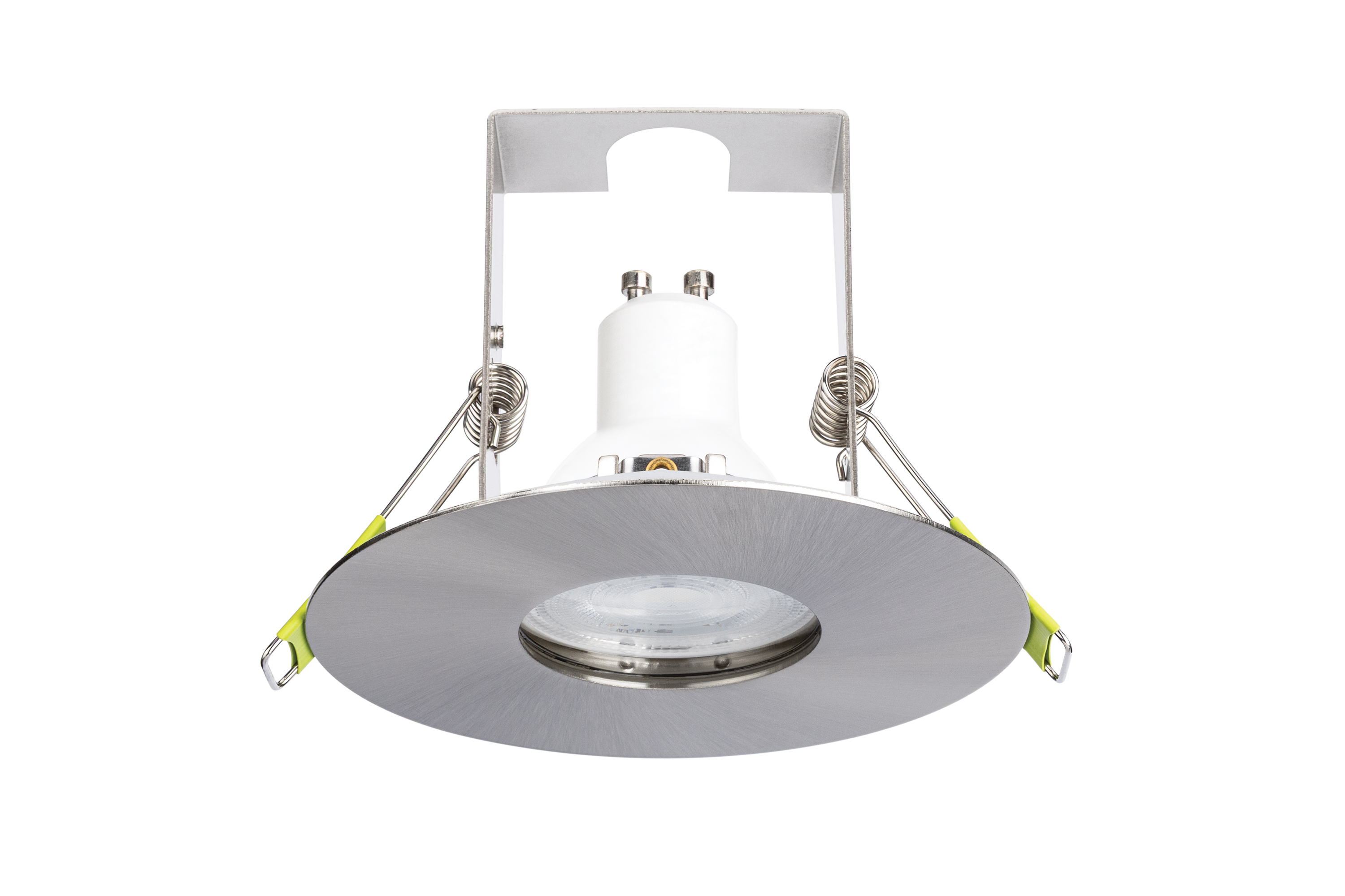 EVOFIRE MAXI 110 FIRE RATED DOWNLIGHT 70-100MM CUTOUT IP65 SATIN NICKEL ROUND +GU10 HOLDER & INSULATION GUARD INTEGRAL