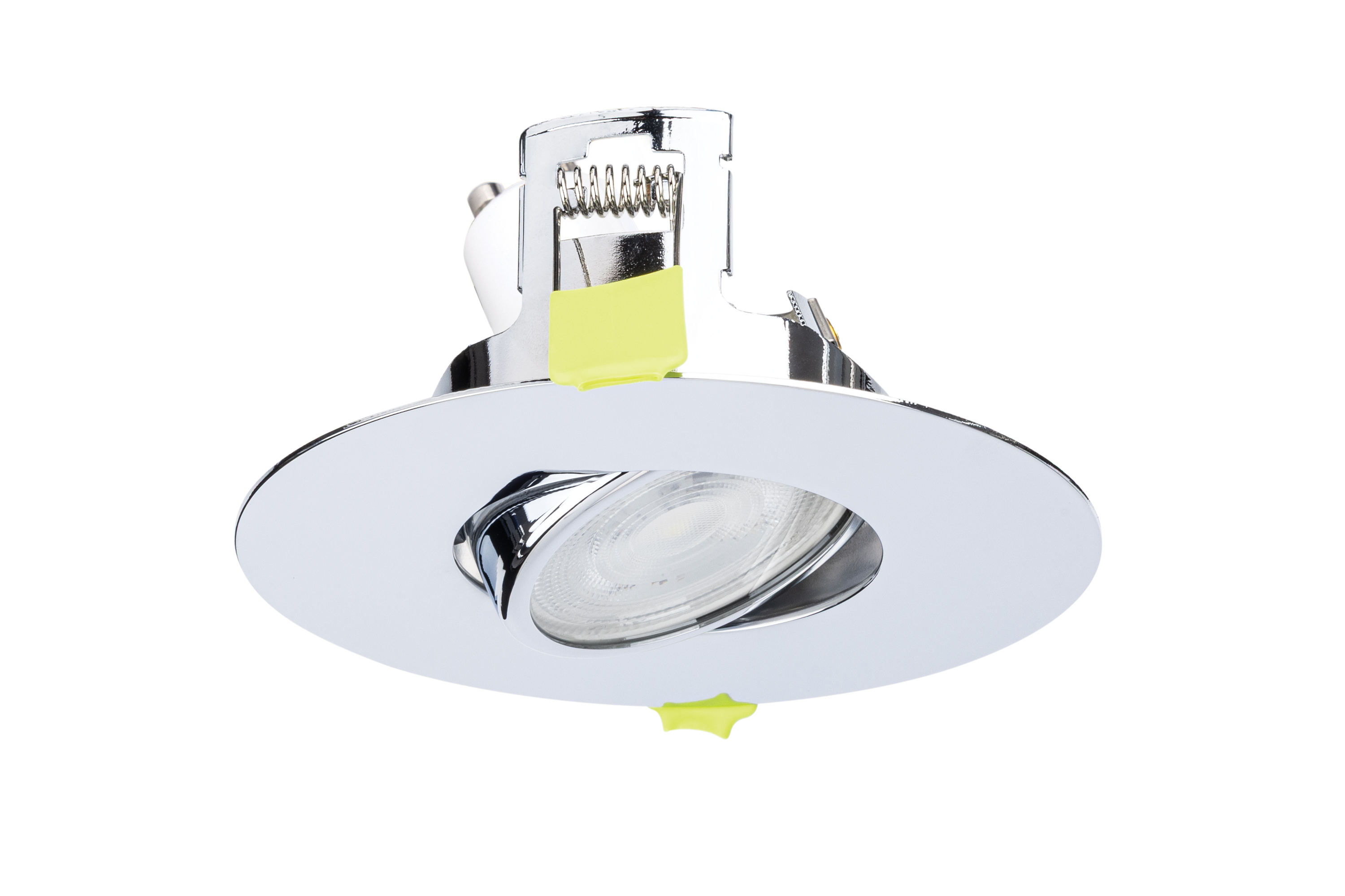 EVOFIRE MAXI 110 TILTABLE FIRE RATED DOWNLIGHT IP20 70-100MM CUTOUT 110MM DIA POLISHED CHROME ROUND INTEGRAL