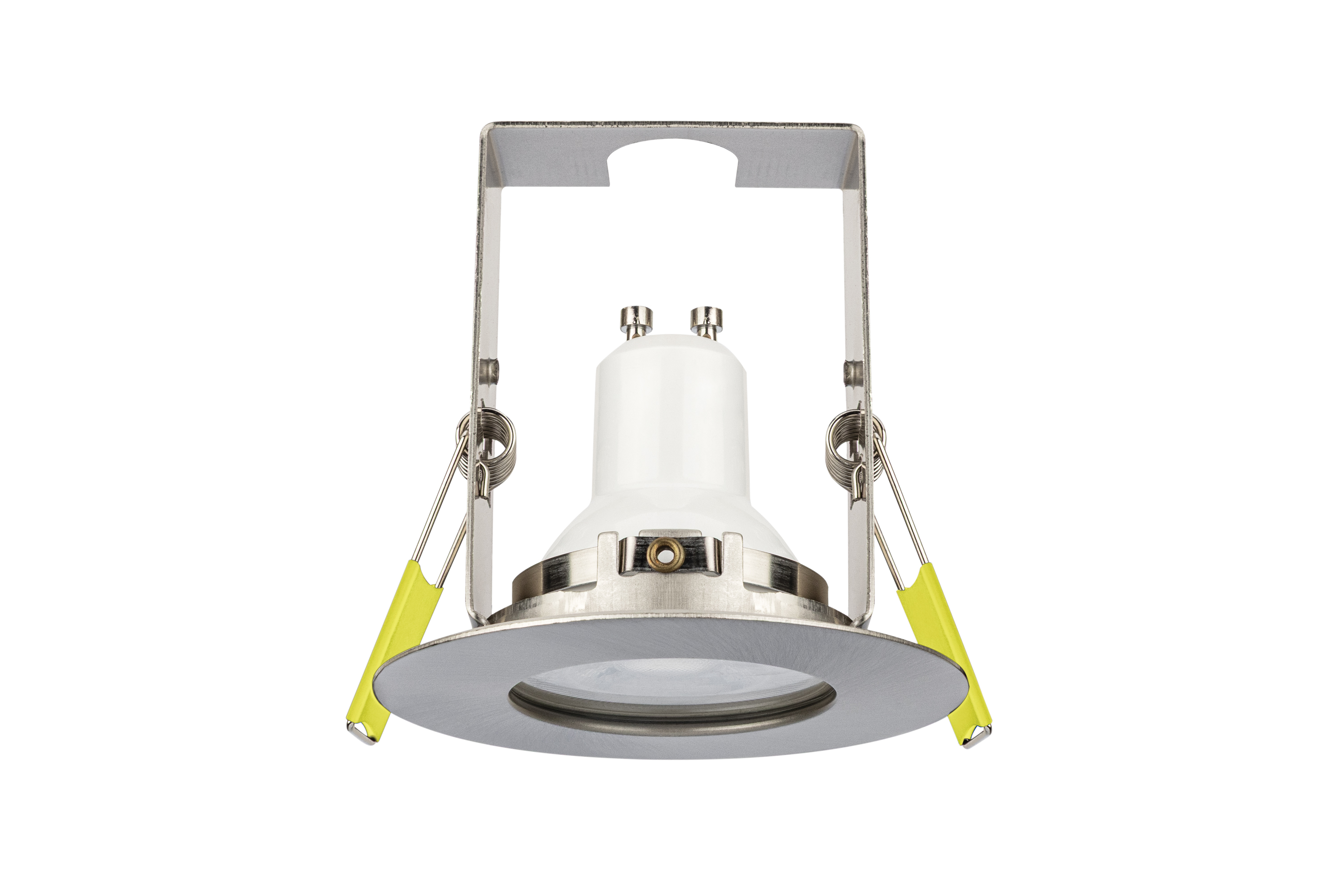 EVOFIRE 85 FIRE RATED DOWNLIGHT 70MM CUTOUT IP65 SATIN NICKEL ROUND +GU10 HOLDER & INSULATION GUARD INTEGRAL
