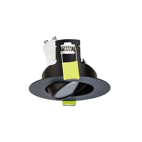 EVOFIRE MIDI 92 TILTABLE FIRE RATED DOWNLIGHT IP20 70-85MM CUTOUT 92MM BEZEL BLACK ROUND +GU10 HOLDER INTEGRAL