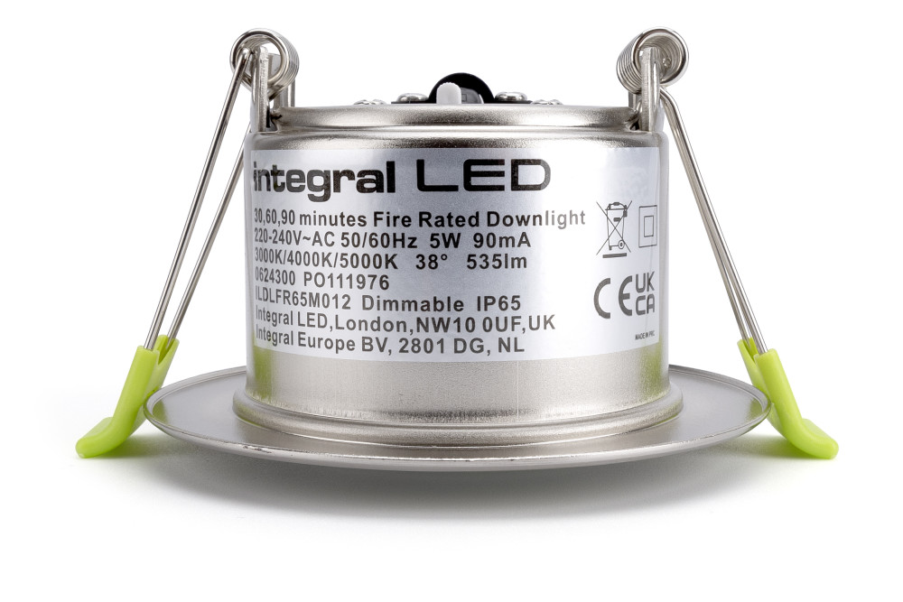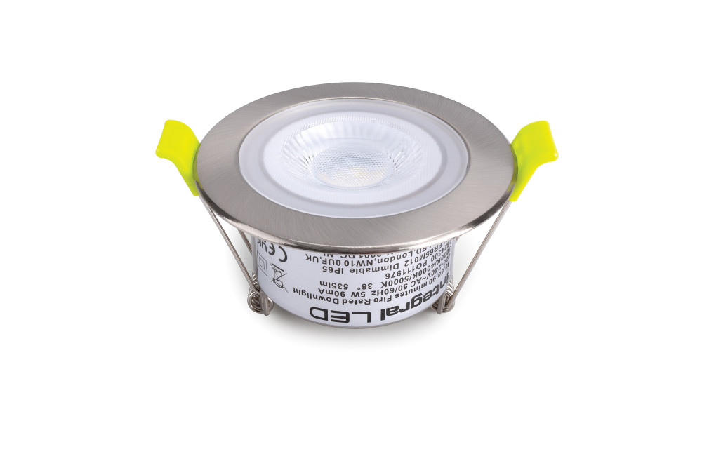 ECOGUARD FIRE RATED DOWNLIGHT 65MM CUTOUT IP65 600LM 5W 3000/4000/5000K 38 BEAM DIMMABLE 120LM/W SATIN NICKEL INTEGRAL