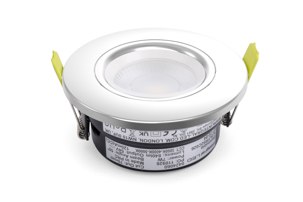 LUXFIRE II FIRE RATED DOWNLIGHT TILTABLE POLISHED CHROME BEZEL INTEGRAL