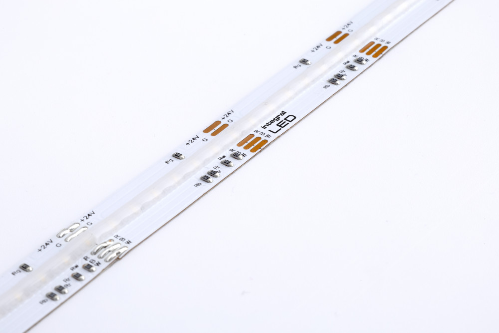 The Integral LED Premium RGBW Strip offers a versatile lighting solution combining vivid colours with white illumination. This 30 metre LED strip utilises COB technology, delivering seamless, shadow-free illumination, making it perfect for creating a polished and professional aesthetic in any space.