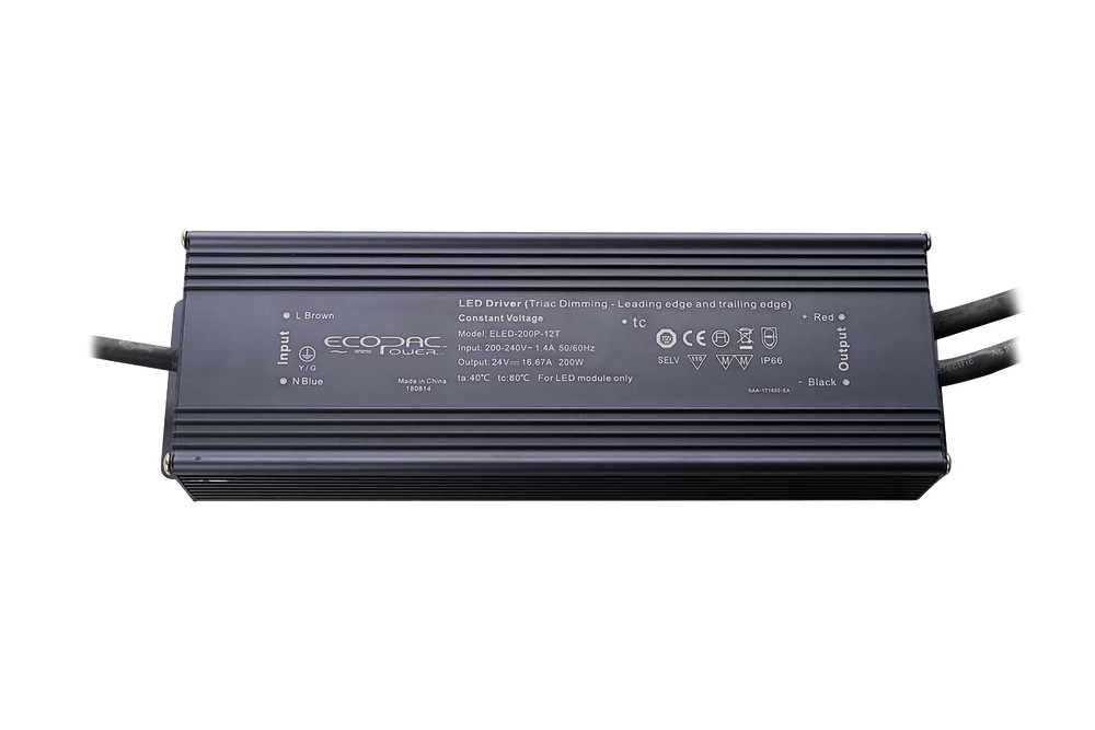 CONSTANT VOLTAGE DRIVER 200W 24VDC IP66 TRIAC DIMMABLE 200-240V INPUT 20W MIN LOAD ECOPAC POWER