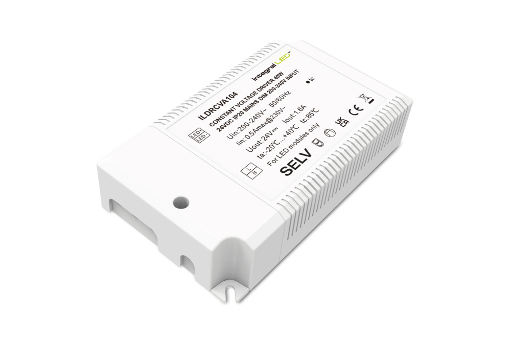 CONSTANT VOLTAGE DRIVER 40W 24VDC IP20 MAINS DIM 200-240V INPUT INTEGRAL