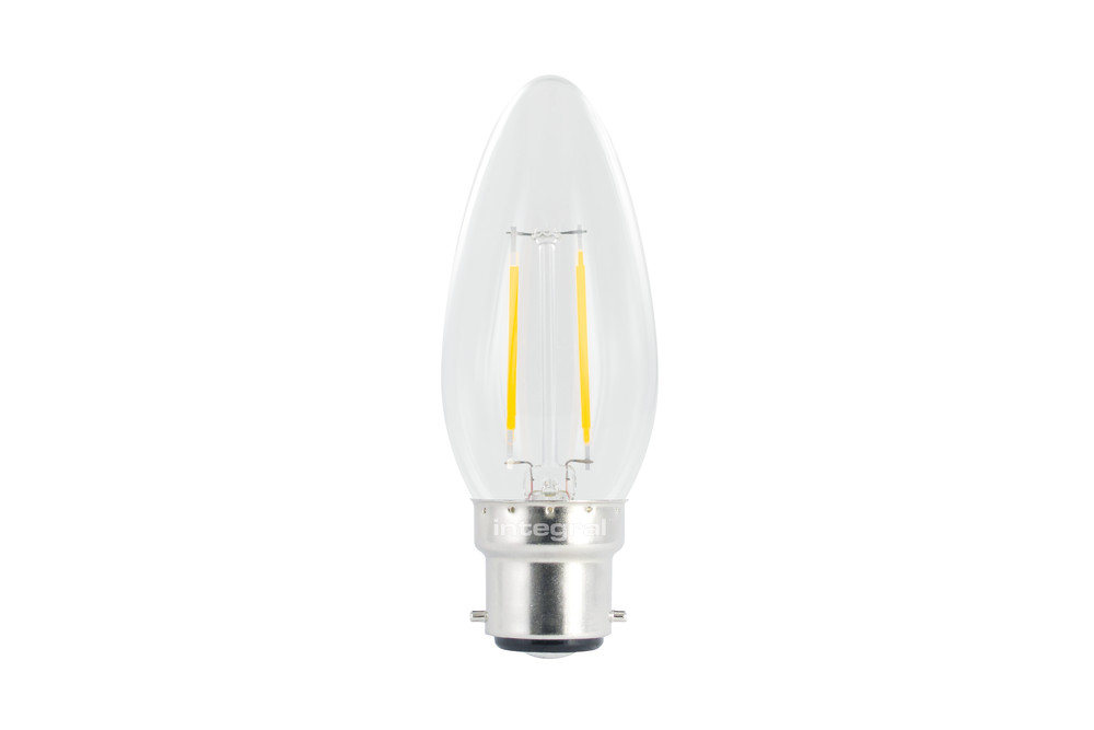 OMNI FILAMENT CANDLE BULB B22 250LM 2.0W 2700K NON-DIMM 320 BEAM CLEAR FULL GLASS INTEGRAL