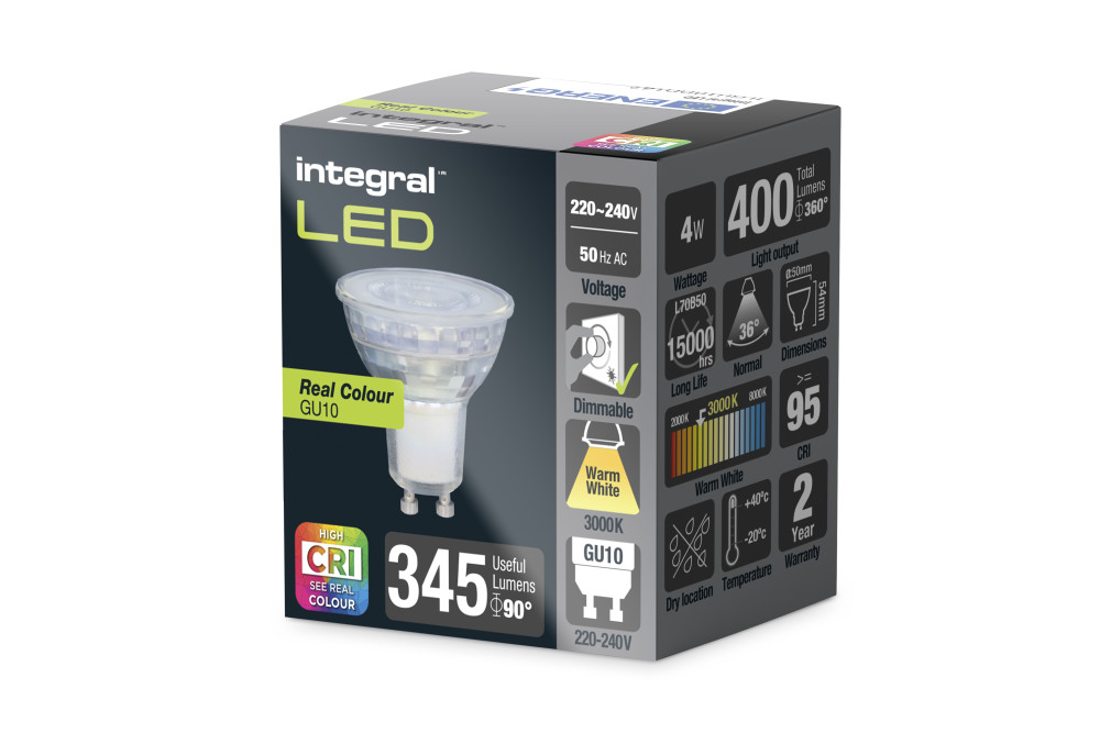 REAL COLOUR GU10 BULB 400LM 4W 3000K DIMMABLE 36 BEAM CRI95 INTEGRAL
