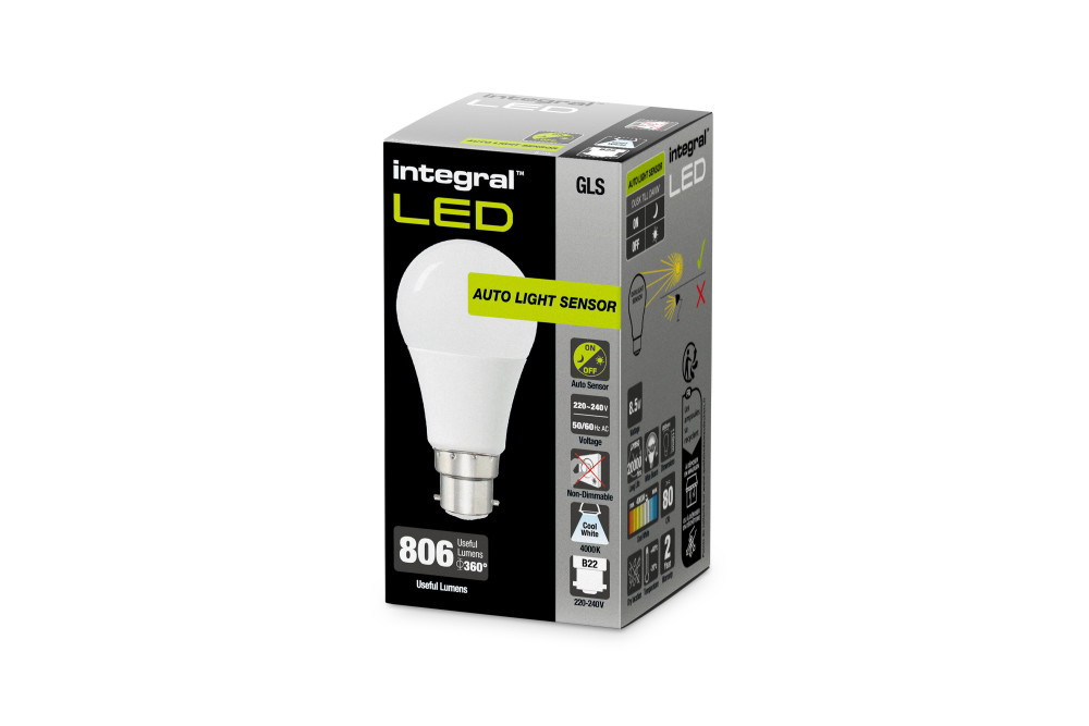 GLS BULB WITH DUSK TO DAWN DUAL SENSOR B22 806LM 8.5W 4000K NON-DIMM 240 BEAM FROSTED INTEGRAL