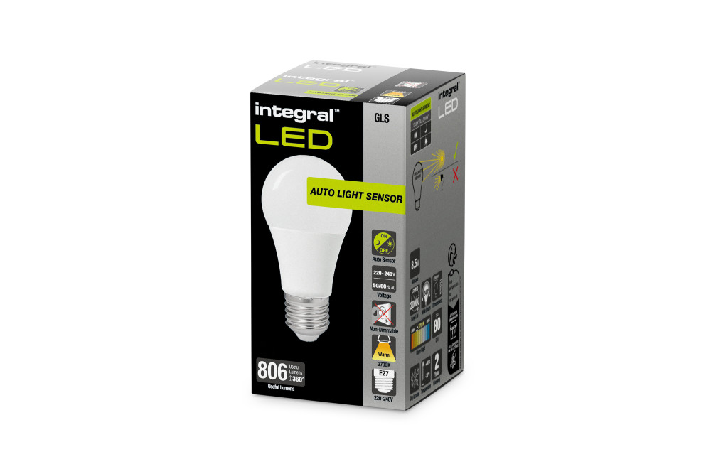 GLS BULB WITH DUSK TO DAWN DUAL SENSOR E27 806LM 8.5W 2700K NON-DIMM 240 BEAM FROSTED INTEGRAL
