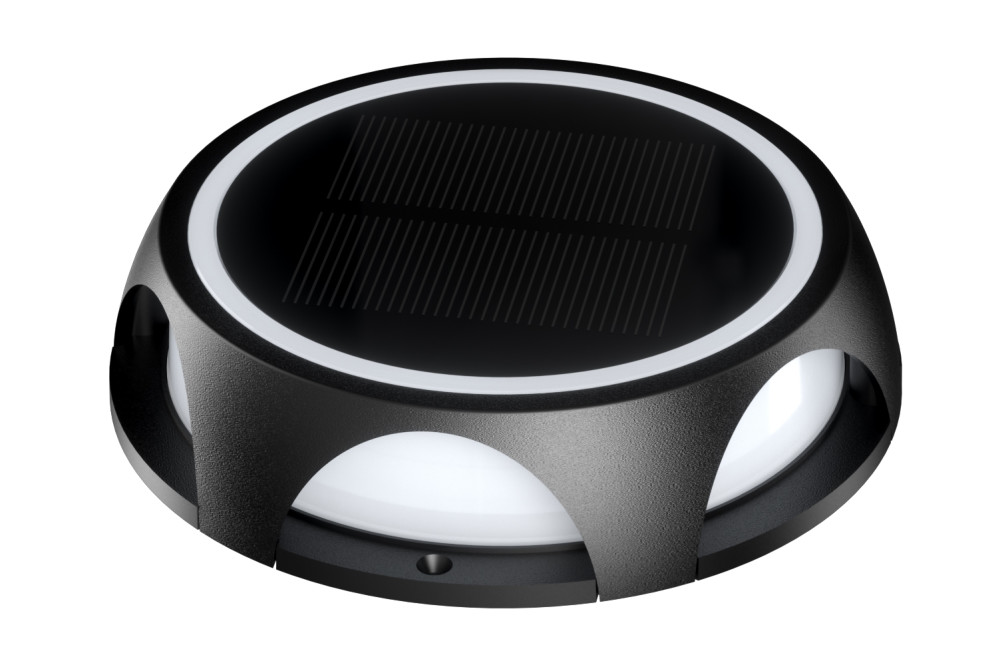 TRUE SOLAR OUTDOOR ROUND GROUND AND WALL LIGHT IP65 ADJUSTABLE 15/50/70LM 1.2W 3000K BLACK INTEGRAL