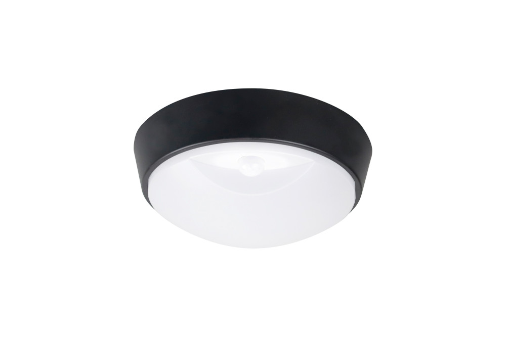 TOUGH SHELL COMPACT CIRCULAR PIR BULKHEAD 215MM DIA 10W 1100LM 3000/4000/6000K SWITCHABLE CCT IP65 IK10 110LM/W INLUDING WHITE AND BLACK BEZELS LED INTEGRAL