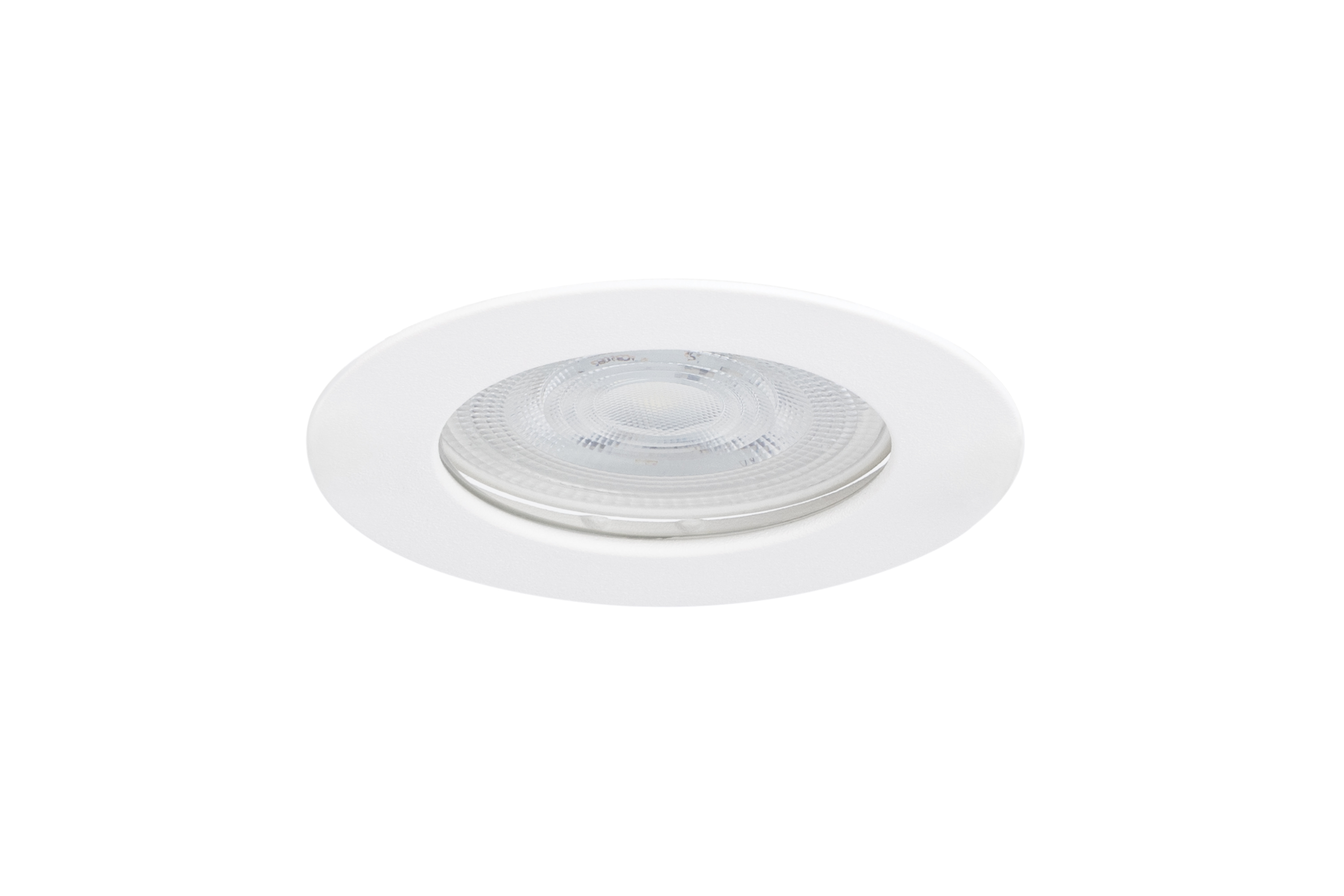 EVOFIRE 72 MICRO BEZEL FIRE RATED DOWNLIGHT 60MM CUTOUT 72MM DIAMETER IP65 WHITE ROUND +GU10 HOLDER INTEGRAL