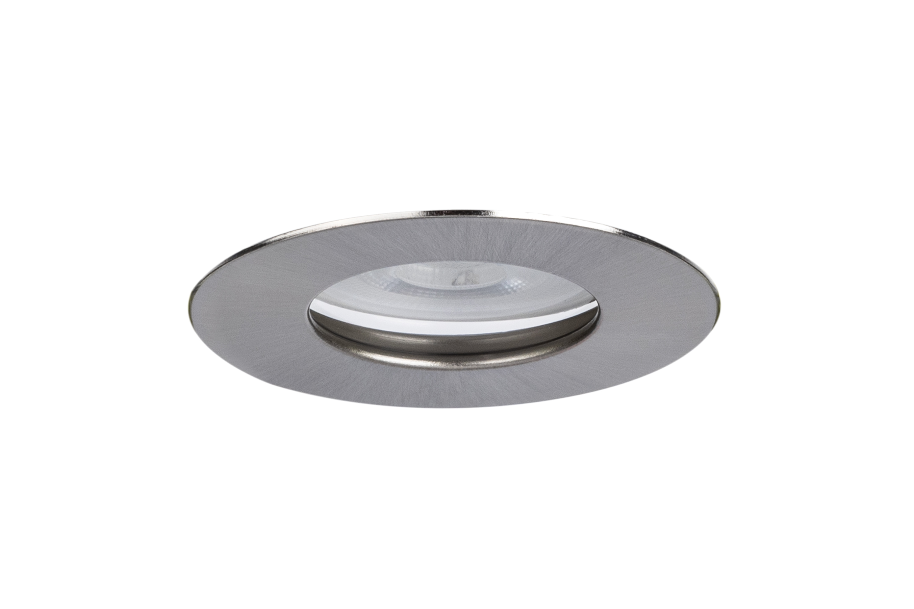 EVOFIRE MINI 55 MICRO BEZEL FIRE RATED DOWNLIGHT 43MM CUTOUT 55MM DIAMETER IP65 SATIN NICKEL ROUND +GU10 HOLDER INTEGRAL