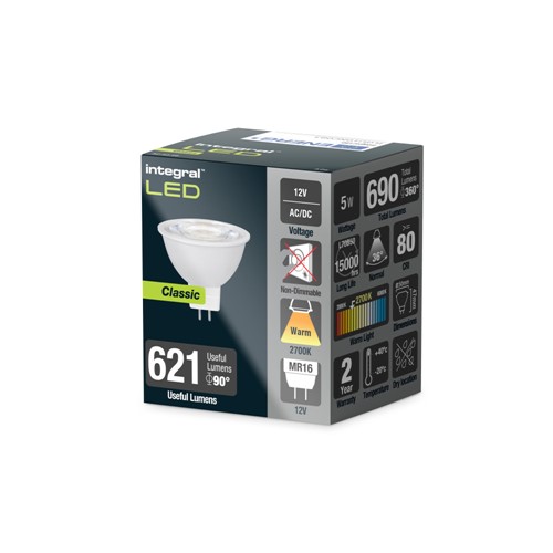 CLASSIC MR16 BULB GU5.3 690LM 5W 2700K NON-DIMM 36 BEAM (CLASS D) INTEGRAL