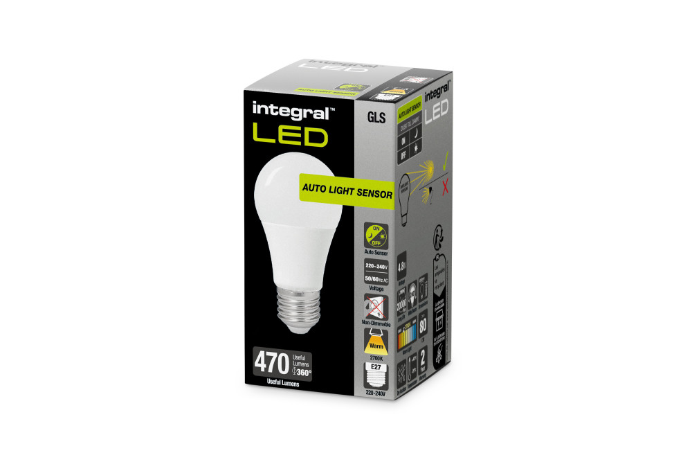 GLS BULB WITH DUSK TO DAWN DUAL SENSOR E27 470LM 4.8W 2700K NON-DIMM 240 BEAM FROSTED INTEGRAL