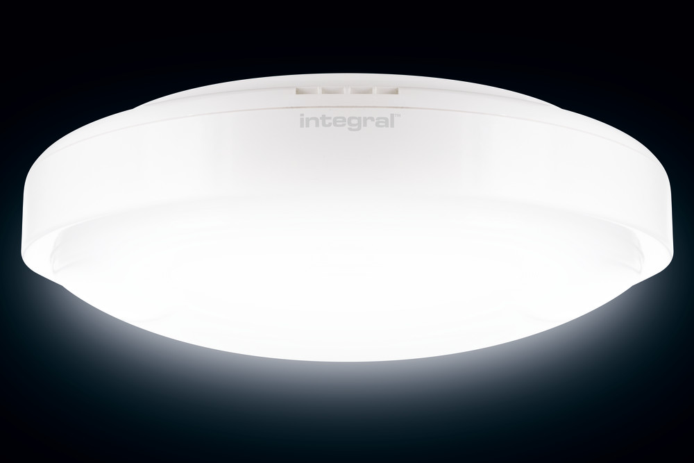 The Integral LED 24W low-energy bulkhead light delivers 1750 lumens, 4000K white colour temperature. Its edge-lit LED design provides a 200 degree wide beam angle and a shadow-free, even light distribution. Integral IP44 Tough-Shell Bulkhead is suitable for all indoor areas such as hallways, stairways, walls and ceilings including bathrooms (Zone 2) and covered (sheltered) external areas, such as porches. Engineered from tough, high-grade polycarbonate material. Long life expectancy of 25,000 hours based on normal usage.