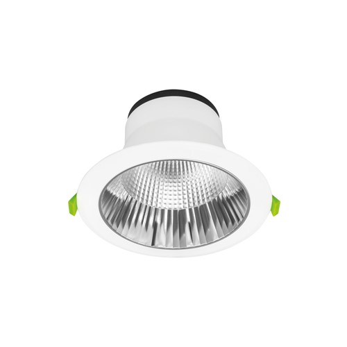 Recess Plus is a range of high-performance LED downlights with outstanding efficiency, switchable CCT (3000K/4000K) and extra-long lifetime, ideal for replacement of traditional recessed CFL downlights. With an IP54 rating out of the box they are perfect for a wide range of applications without the need to add accessories. The deep-recessed facetted reflector design ensures a low-glare (<19 in a lighting scheme). This range of well-finished and lightweight downlights are suitable for placement in Zones 1 and 2 of bathrooms/washrooms, outdoor sheltered areas as well as common indoor spaces. The included easy to use push-fit connector provides for a quick and safe installation. Compatible LED drivers available to allow for DALI, 1-10V, Triac, Switch Dim or Wireless control to suit the project.