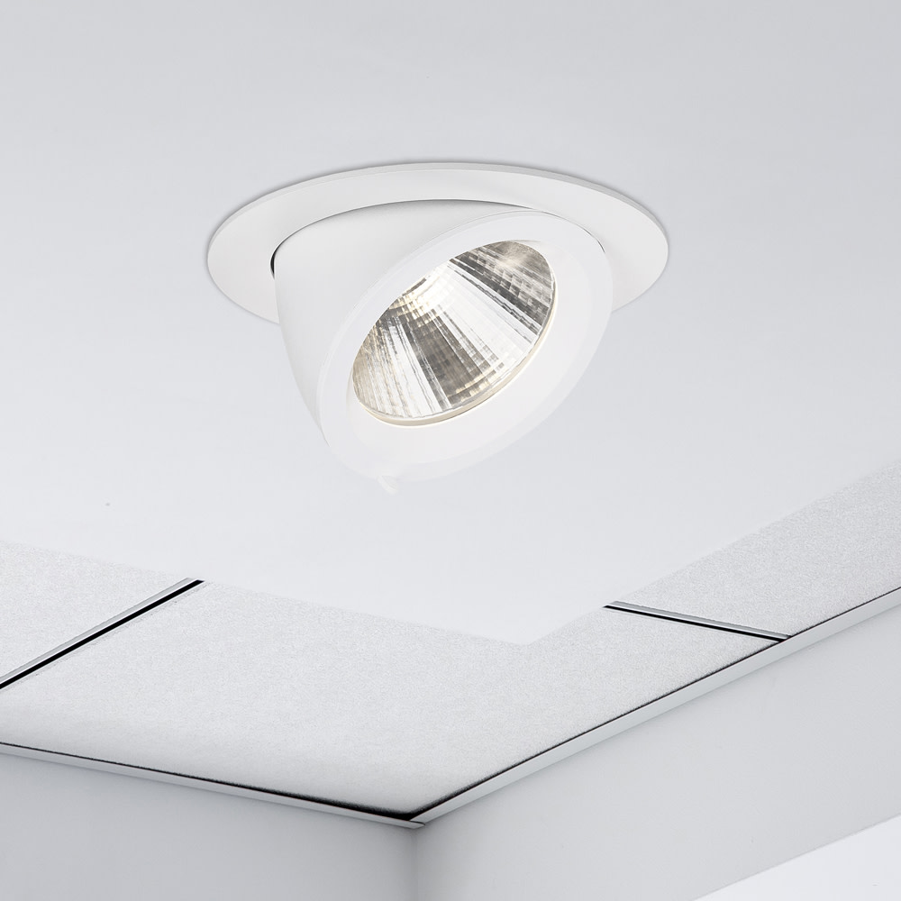 Integral Scoop downlights are a commercial solution for washing walls or displays with high quality CRI 90 real colour lighting. They feature fully rotatable bezels and a 38° downward tilt which brings the fitting well below the ceiling line allowing precise beam control, lighting areas that would not be possible with conventional downlights.