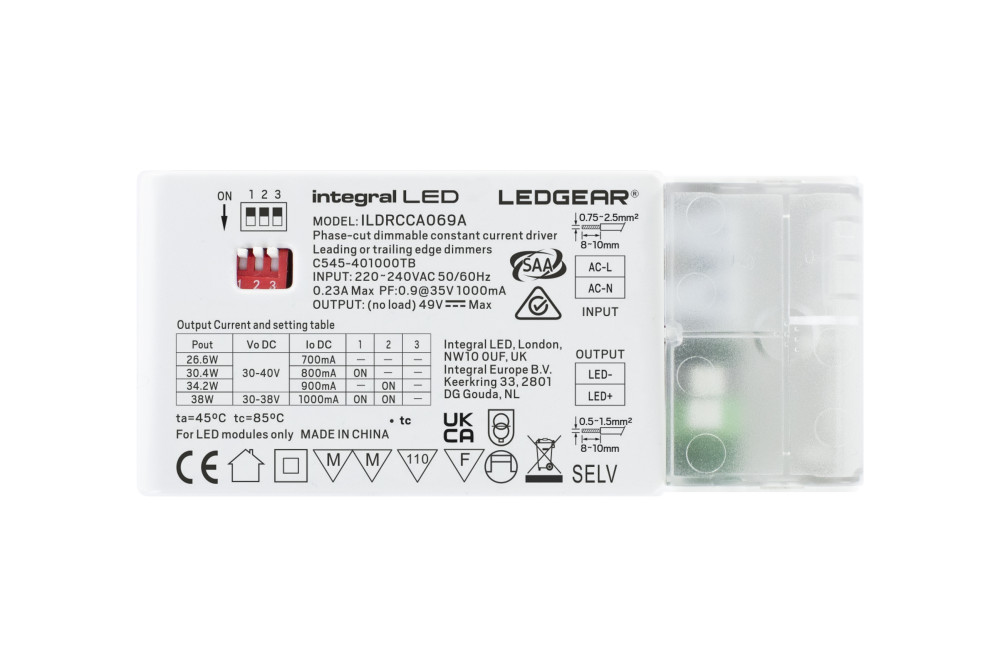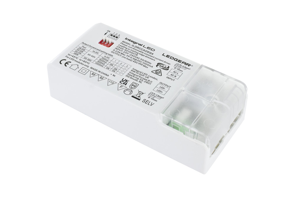 CONSTANT CURRENT DRIVER ADJUSTABLE OUTPUT 28-38W 700-1000MA IP20 TRIAC DIMMABLE 30-40V OUTPUT INTEGRAL