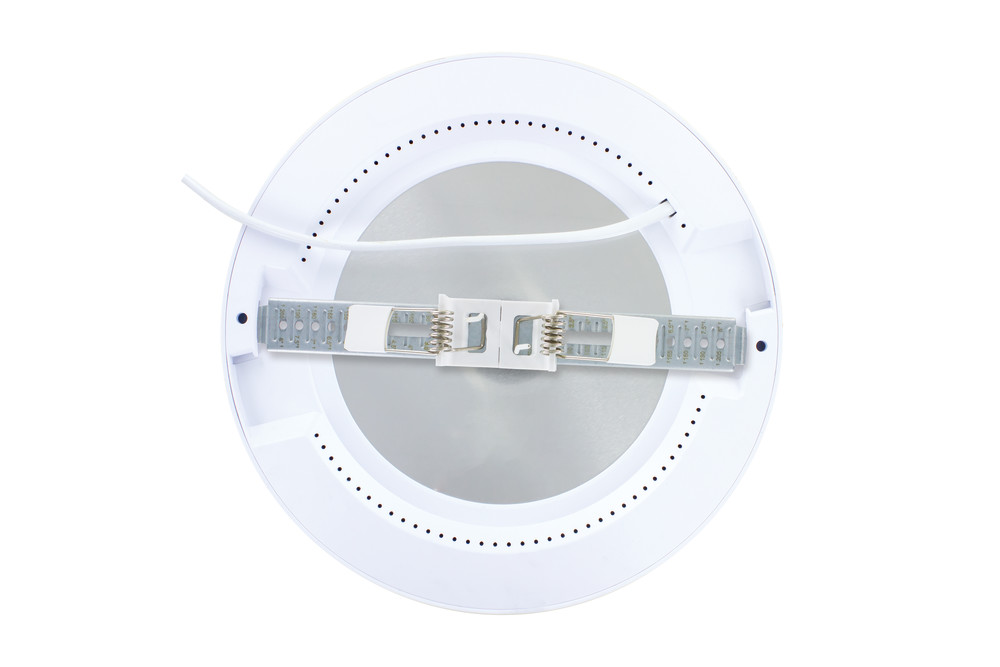 A configurable cut-out size from 65 to 205mm with a surface mount option provides installation flexibility. The integrated driver eliminates visible flicker, and a frosted diffuser delivers a uniform light.