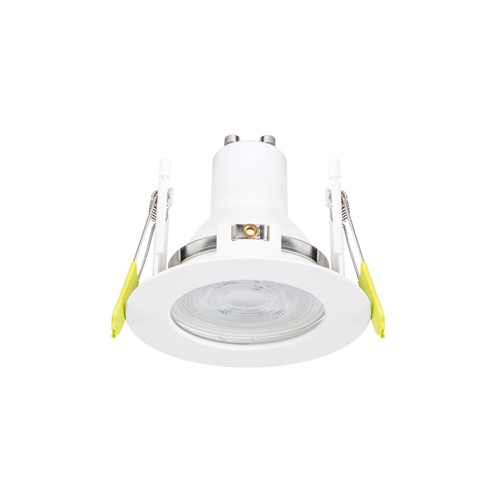 EVOFIRE 72 MICRO BEZEL FIRE RATED DOWNLIGHT 60MM CUTOUT 72MM DIAMETER IP65 WHITE ROUND +GU10 HOLDER INTEGRAL