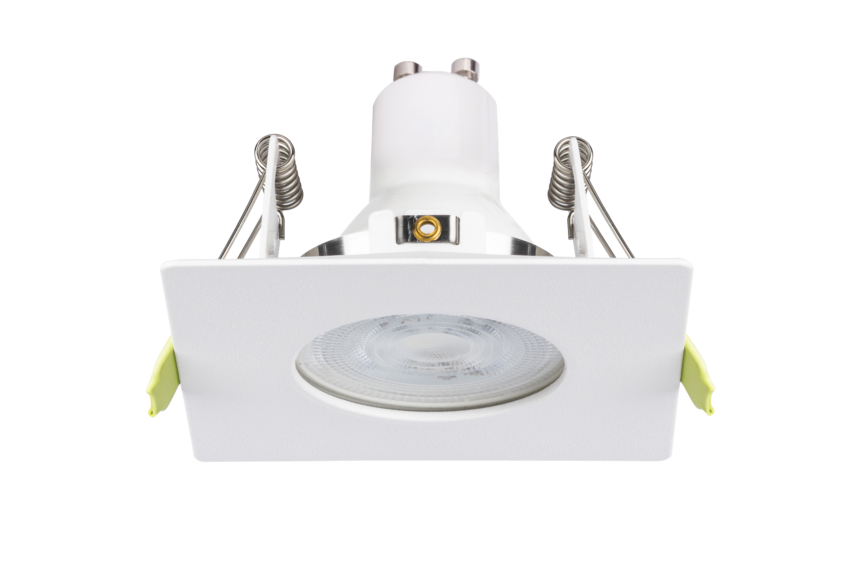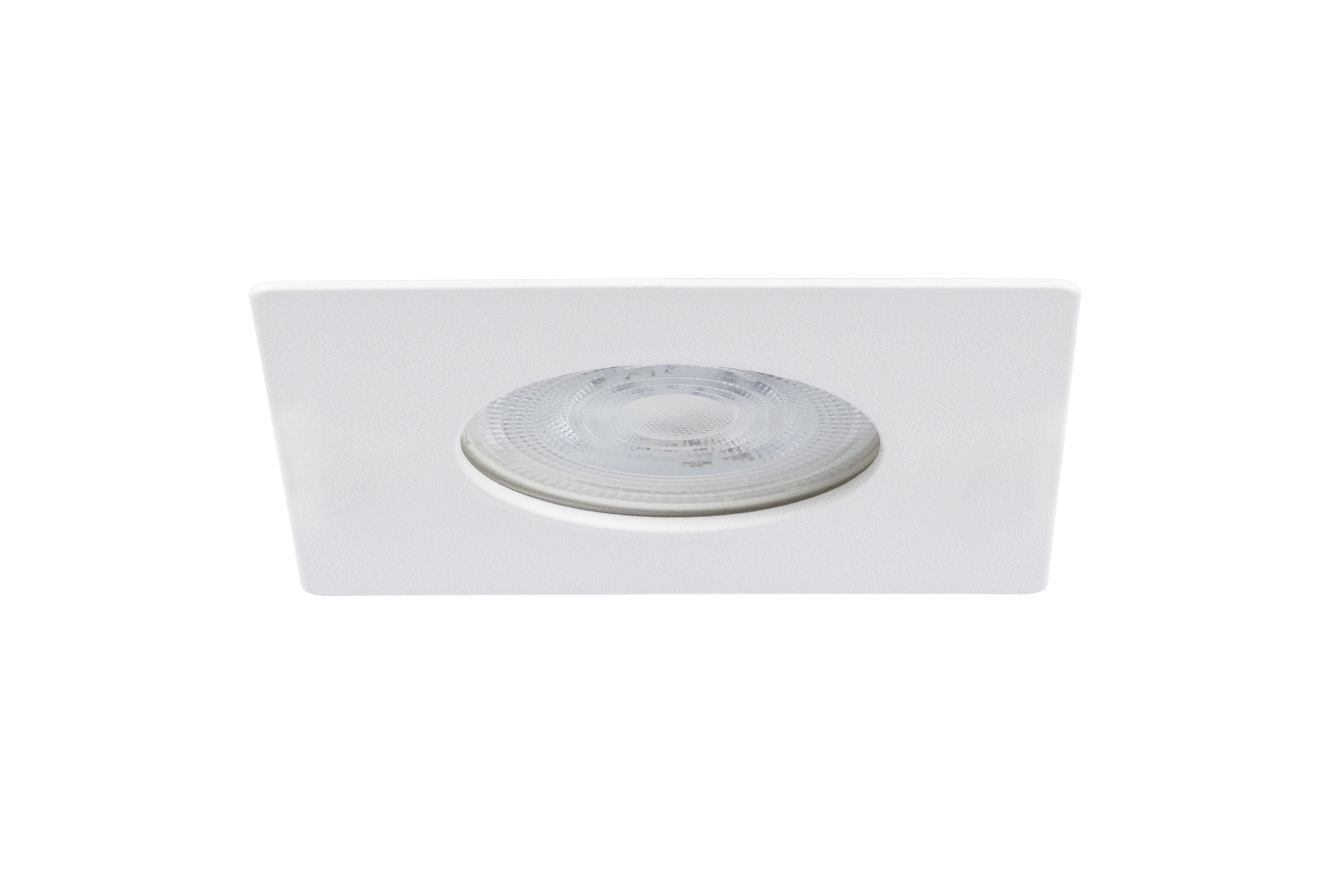 EVOFIRE 85 FIRE RATED DOWNLIGHT 70MM CUTOUT IP65 WHITE SQUARE +GU10 HOLDER INTEGRAL