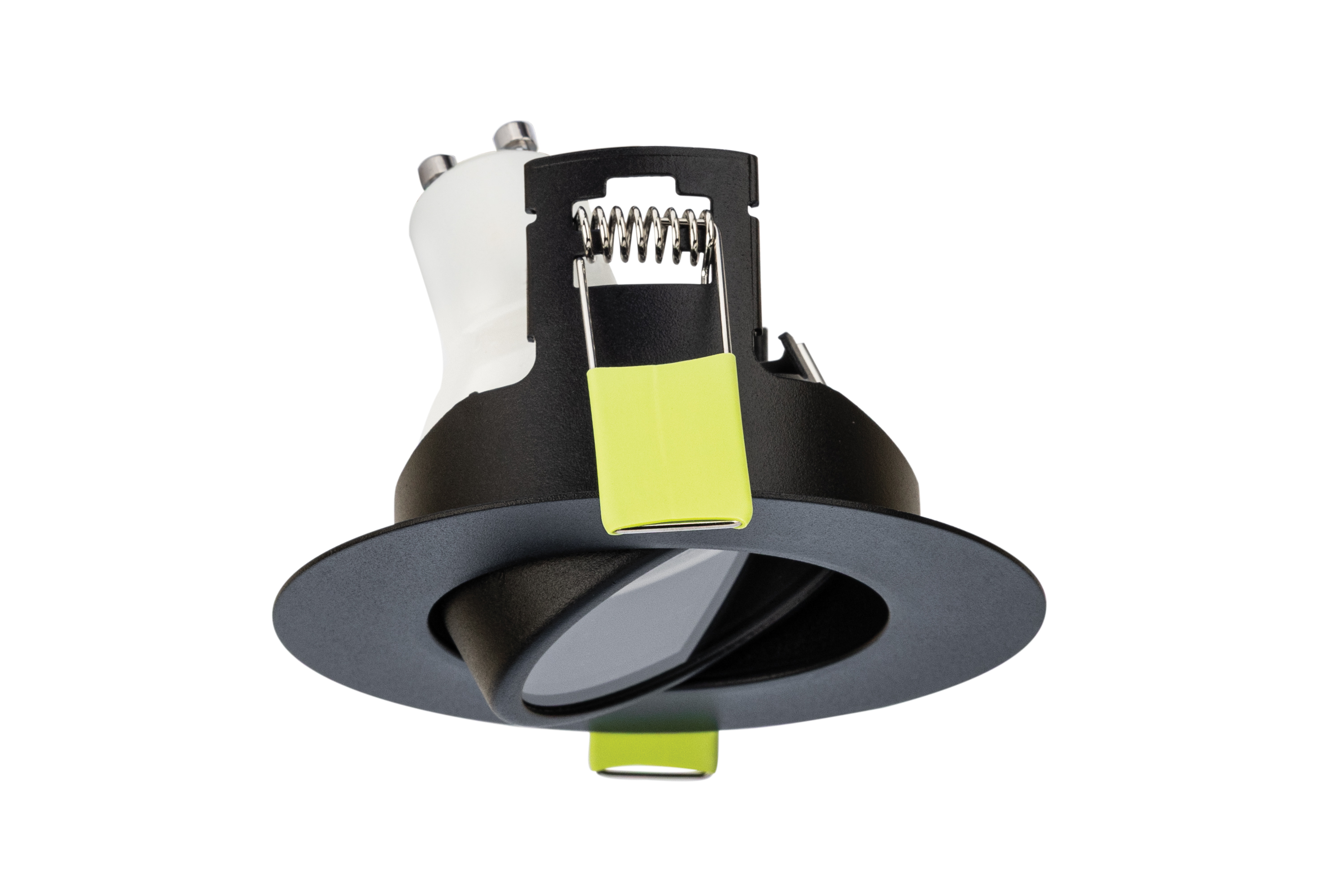 EVOFIRE MIDI 92 TILTABLE FIRE RATED DOWNLIGHT IP20 70-85MM CUTOUT 92MM BEZEL BLACK ROUND +GU10 HOLDER INTEGRAL