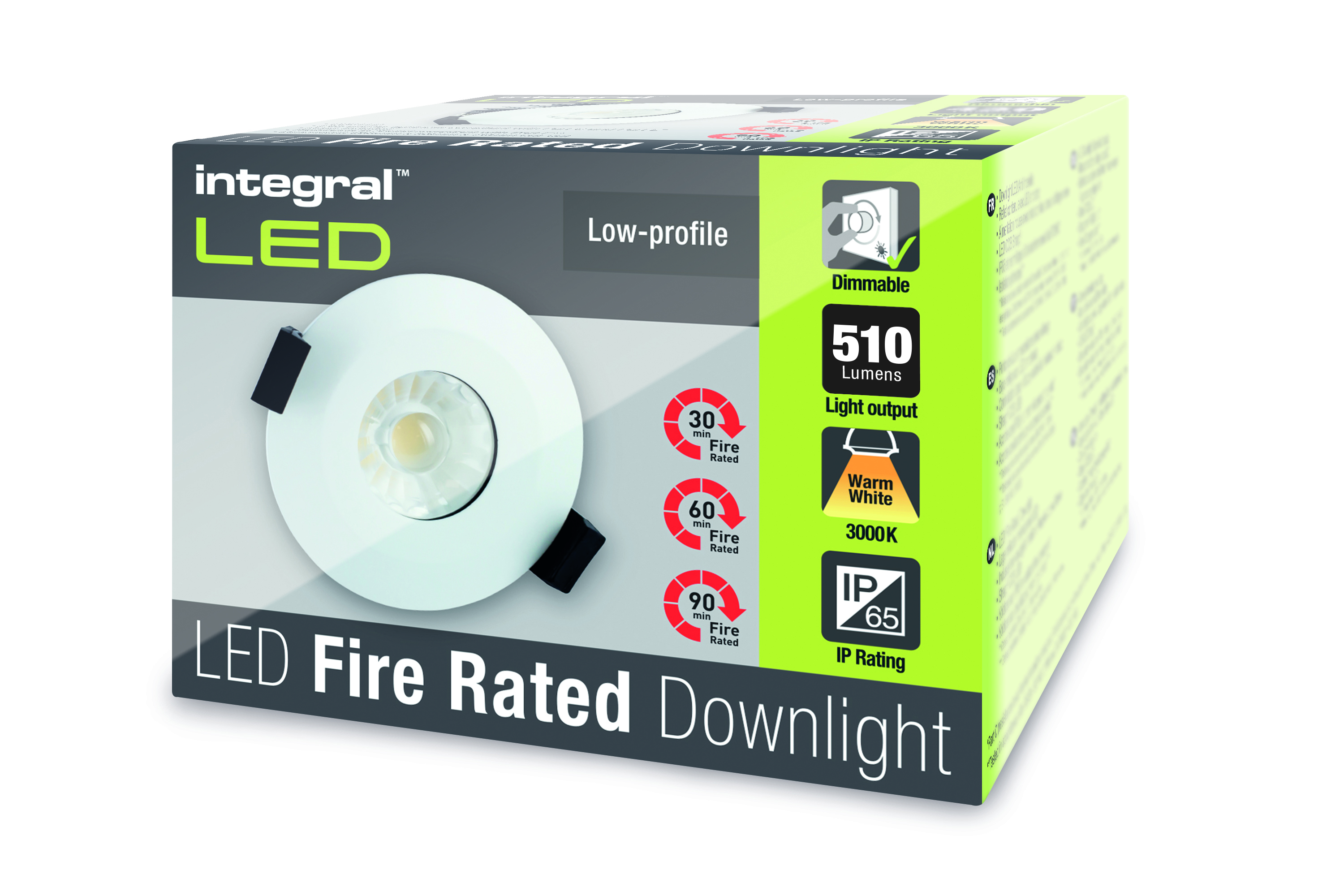 LOW-PROFILE FIRE RATED DOWNLIGHT 70-75MM CUTOUT IP65 510LM 6W 3000K 38 BEAM DIMMABLE 85LM/W WHITE INTEGRAL