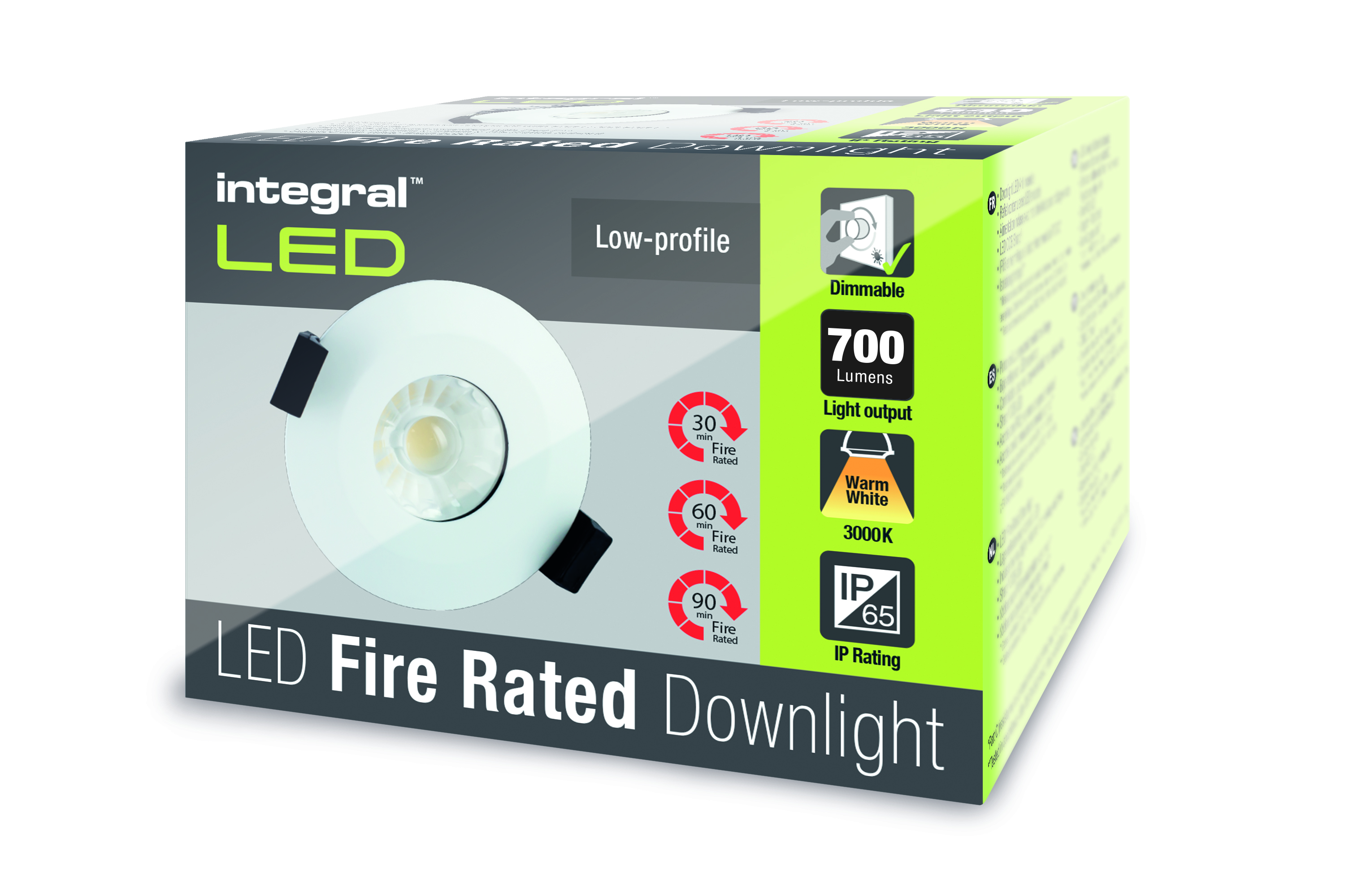 LOW-PROFILE FIRE RATED DOWNLIGHT 70-75MM CUTOUT IP65 700LM 8.5W 3000K 60 BEAM DIMMABLE 82LM/W WHITE INTEGRAL
