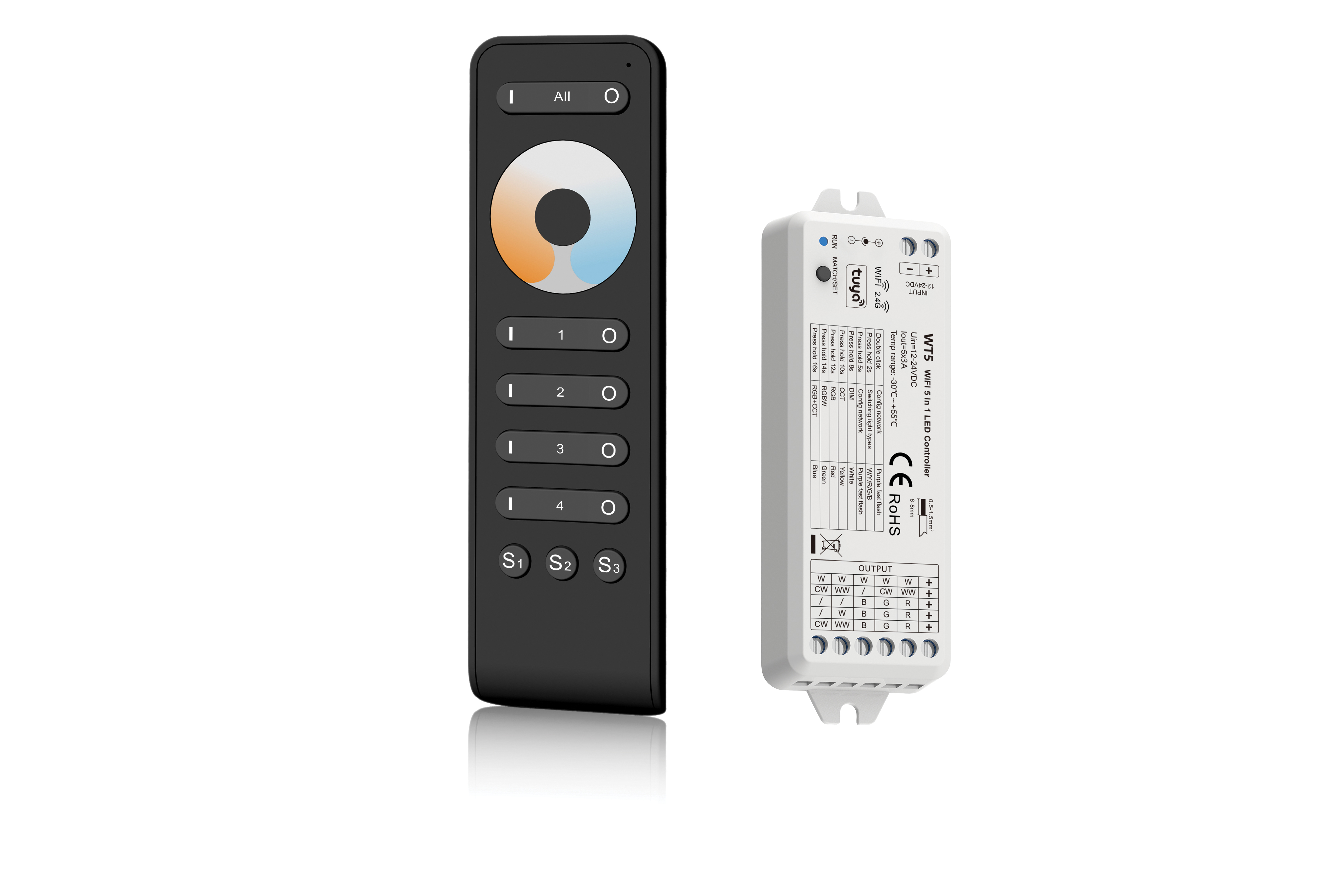 SKYDANCE WT5 + RS2 LED CONTROLLER BUNDLE WIFI & RF 2.4GHZ 5-IN-1 RECEIVER & REMOTE APP CONTROLLED CCT TUNEABLE 12-24V CONSTANT VOLTAGE 360W(24V) INTEGRAL