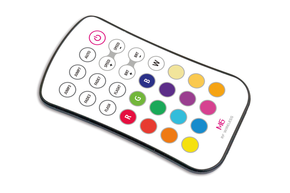 This RGB colour RF (Radio Frequency) receiver and remote control can be used with Integral RGB colour changing strips. With the RGB colour changing remote control, you can easily change your strip colour by choosing 16 static colours or 6 dynamic light modes, control the brightness and change the speed when choosing the dynamic light mode. Pressing the loop play button allows you to play the 6 dynamic light modes continuously. An easy-to-follow installation guide can be downloaded from our website.