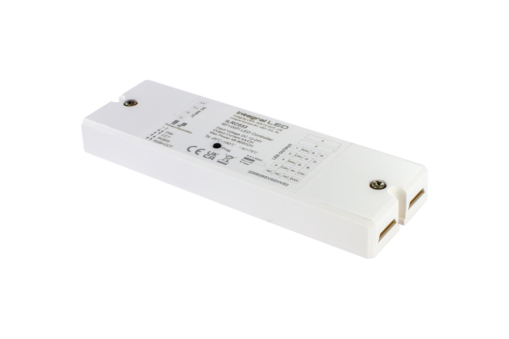 This RF & WiFi receiver is simple and easy to connect and works with all Integral LED strips (except digital). This receiver is compatible with single colour, CCT and RGBW wall plates, it can be controlled via Tuya app and can be linked to Alexa and Google Home. Depending on the strip you select, you can choose a RF single colour remote (ILRC020 or ILRC032), or a RF colour temperature changing remote (ILRC021 or ILRC022), or a RF RGBW remote (ILRC015, ILRC016, ILRC017, ILRC018, ILRC019) to work with this receiver.