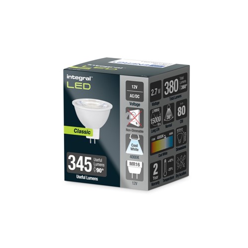 CLASSIC MR16 BULB GU5.3 380LM 2.7W 4000K NON-DIMM 36 BEAM (CLASS D) INTEGRAL