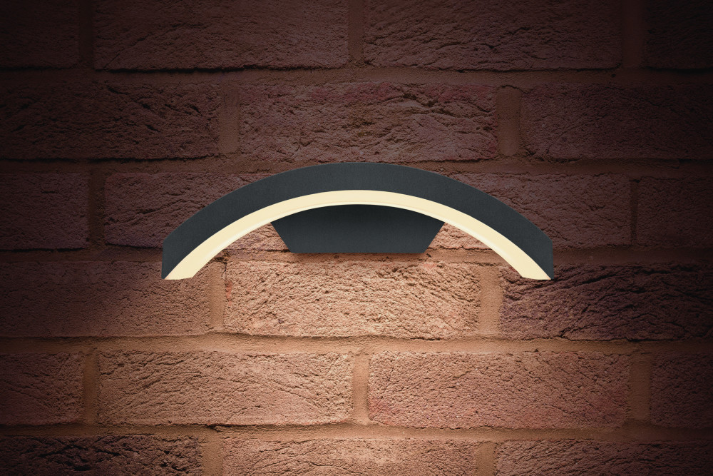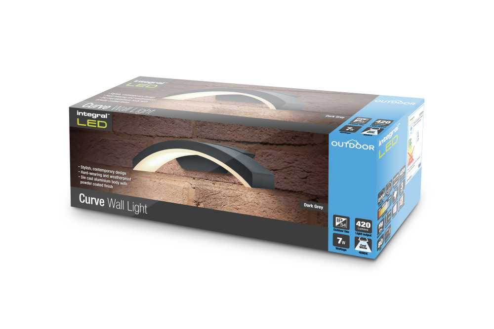 OUTDOOR DECORATIVE WALL LIGHT CURVE IP54 380LM 7.5W 4000K DOWN LIGHT DARK GREY INTEGRAL