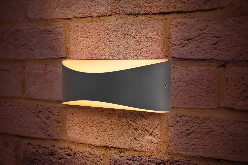 OUTDOOR DECORATIVE WALL LIGHT WAVE IP65 310LM 7W 3000K UP/DOWN LIGHT DARK GREY INTEGRAL