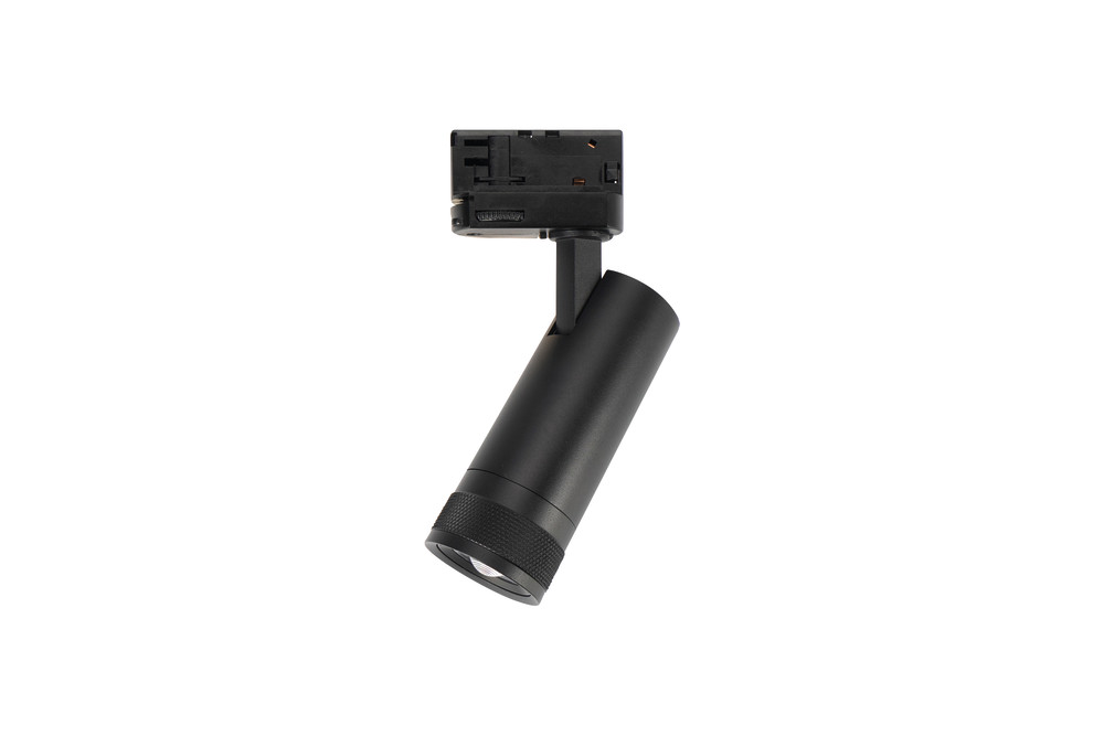 FOCUSPRO 8W BLACK LED SPOT LIGHT NON-DIMMABLE ZOOMABLE BEAM ANGLE 18-50 DEG TRACK MOUNTED 3 CIRCUIT 4000K 131MM CRI90 500LM 93LM/W 220-240V INTEGRAL