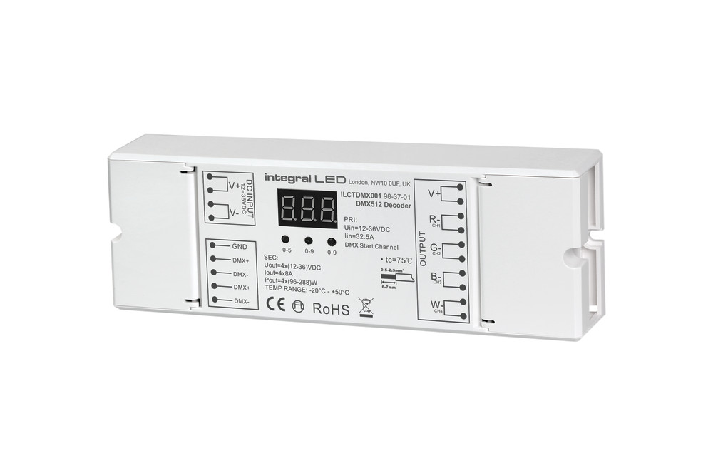 DMX 512 DECODER 12-36VDC CONSTANT VOLTAGE 384W(12V) AND 768W(24V) AND 1152W(36V) INTEGRAL