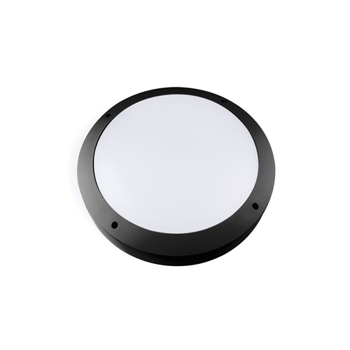 GUARDIAN DIE-CAST ALUMINUM BULKHEAD BLACK FINISH DIECAST ALUMINUM STANDARD VERSION & BASE , POLYCARBONATE DIFFUSER, WITH PLUG & PLAY GEAR TRAY POWER SELECTABLE 11/13/15/18W, 1179lm - 2128lm, CRI 80 , BEAM ANGLE 120, 220-240V/50-60Hz CCT SELECTABLE 3000K/4000K/6500K IP66 IK10 DIAMETER Φ360*90mm INTEGRAL