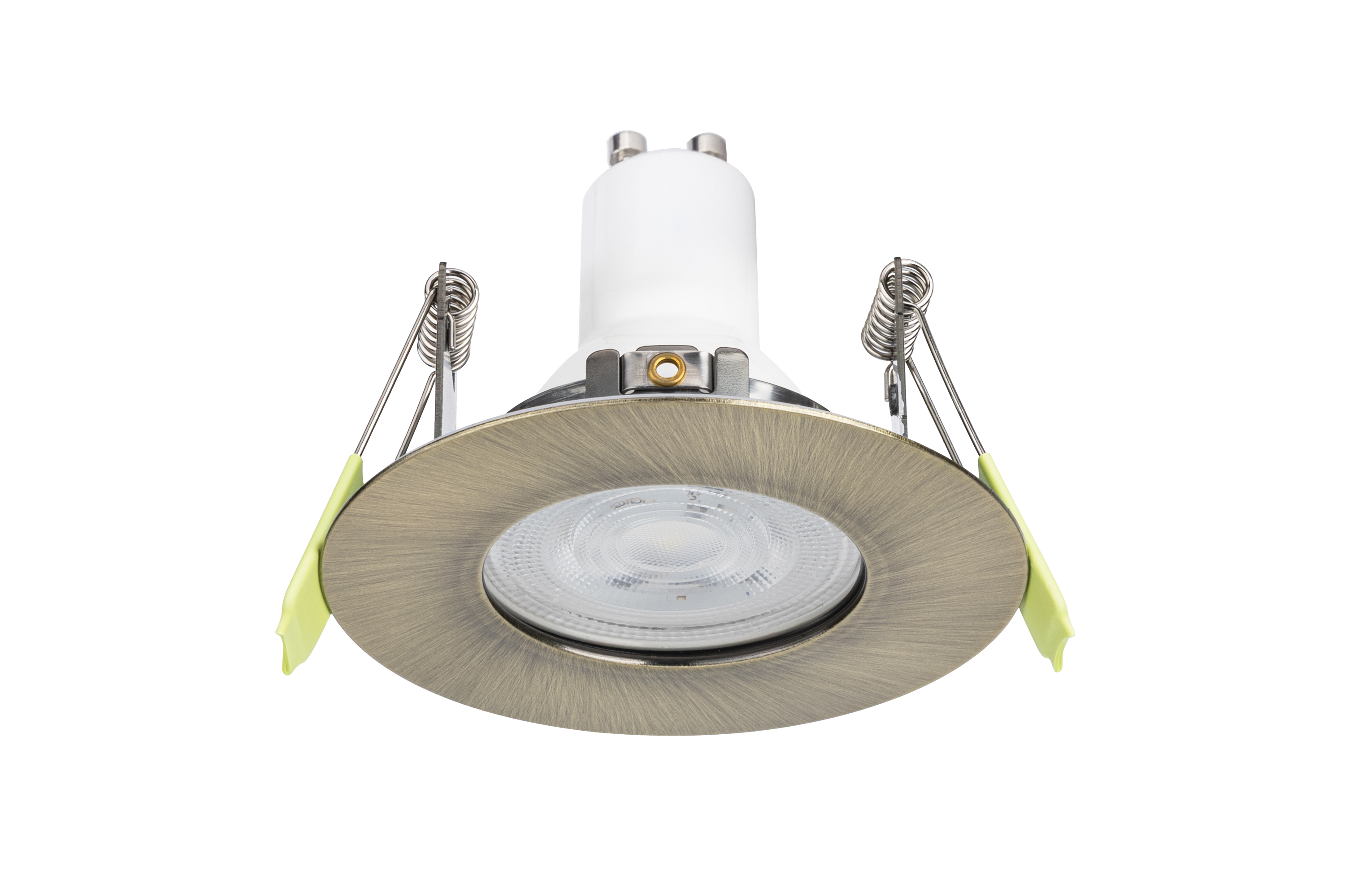 EVOFIRE 85 FIRE RATED DOWNLIGHT 70MM CUTOUT IP65 ANTIQUE BRASS ROUND +GU10 HOLDER INTEGRAL