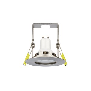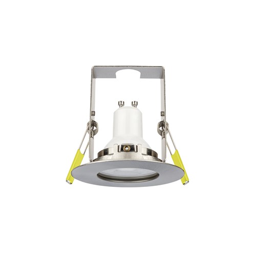 EVOFIRE 85 FIRE RATED DOWNLIGHT 70MM CUTOUT IP65 SATIN NICKEL ROUND +GU10 HOLDER & INSULATION GUARD INTEGRAL