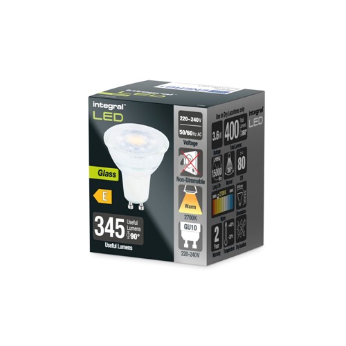 GLASS GU10 BULB 400LM 3.6W 2700K NON-DIMM 36 BEAM INTEGRAL