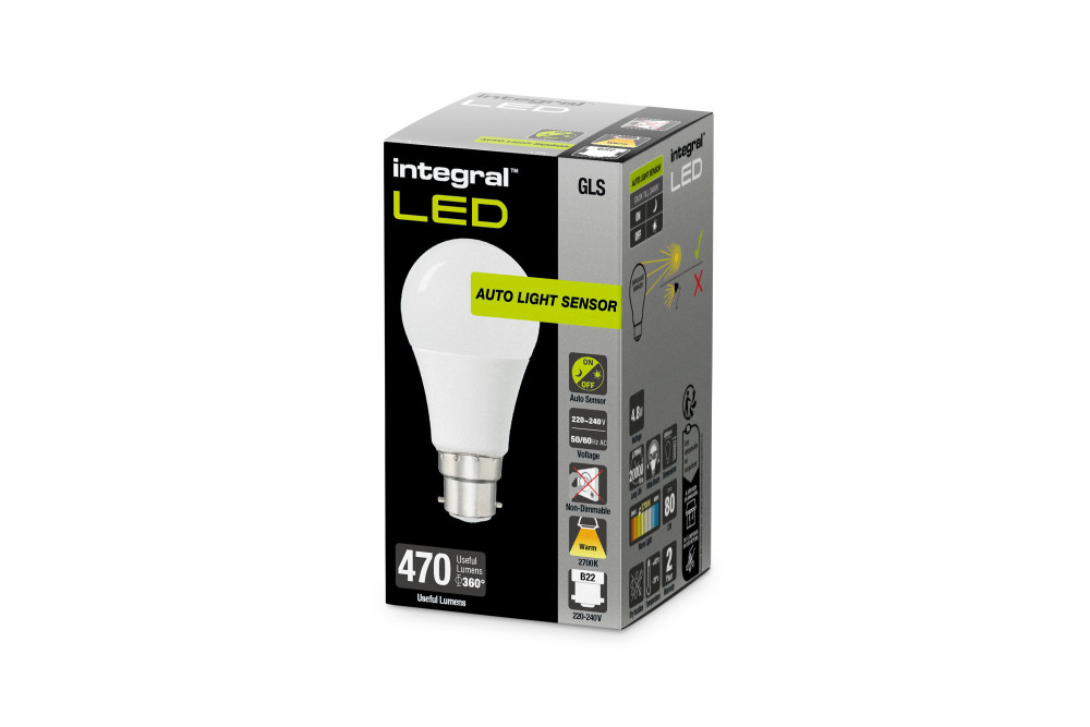 GLS BULB WITH DUSK TO DAWN DUAL SENSOR B22 470LM 4.8W 2700K NON-DIMM 240 BEAM FROSTED INTEGRAL