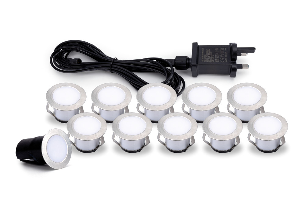 A stylish and energy-efficient solution for illuminating your outdoor spaces, the Deck Light 10-Piece Kit is ideal for creating an welcoming atmosphere for decks, patios, and garden paths.